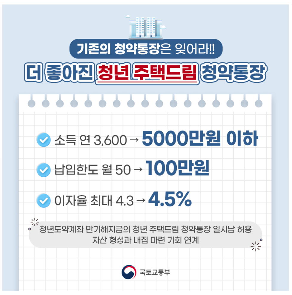 청년주택드림청약은 청년을 위한 ‘장기적 기회 준비 상품’입니다. 소액으로 시작할 수 있고, 우대금리, 비과세, 소득공제, 청약 가점이라는 강력한 무기가 함께 제공되는 만큼, 단순 저축 개념을 넘어 청년의 생애 첫 자산 형성 기반이자 미래 주거 확보 전략으로 봐야 합니다.